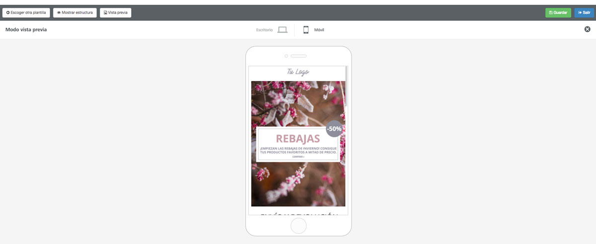 Cuando creas una nueva Landing o bien modificas una ya creada, puedes ver una previsualización tanto en dispositivos móviles como en dispositivos de escritorio.