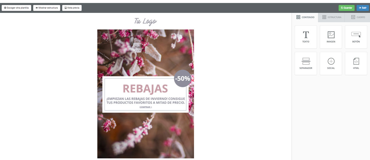 Crea Landings espectaculares y haz que tus envíos sean más atractivos e interactivos. Puedes adjuntar imágenes, videos, enlaces a tus redes sociales, un enlace de baja e incluso tu propio código HTML. Las posibilidades para sorprender a tus clientes con una Landing son infinitas.