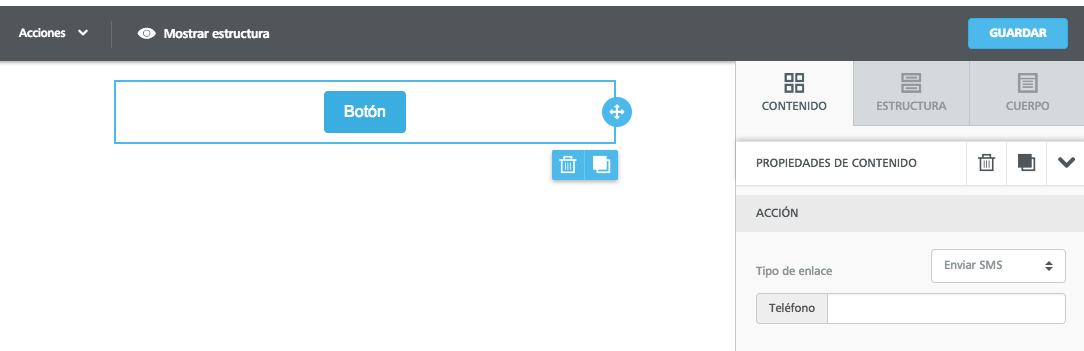 Esta opción es muy útil para que los destinatarios puedan solicitar información o compra rápidamente solo con pulsar el botón en las campañas de SMS.